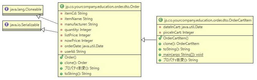 OrderクラスのimplementsをみるとClonableとSerializableを利用しています。